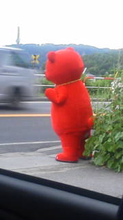 赤い熊が会社の裏にいて