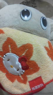 寝るときは枕にしてます。ビスコのお姉さんありがとう!」