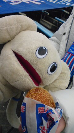 山形のスタジアムグルメの一つ、炎のカレーパンが食べたいな~…なんて思ってたら、一緒に旅行してくれたパンダがカレーパン買ってきてくれた!